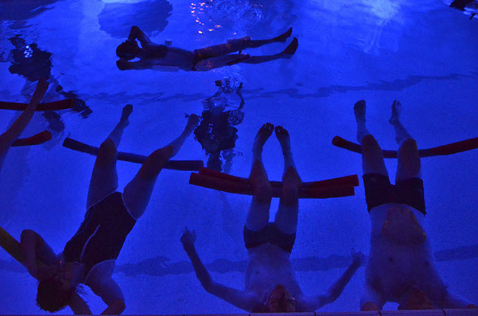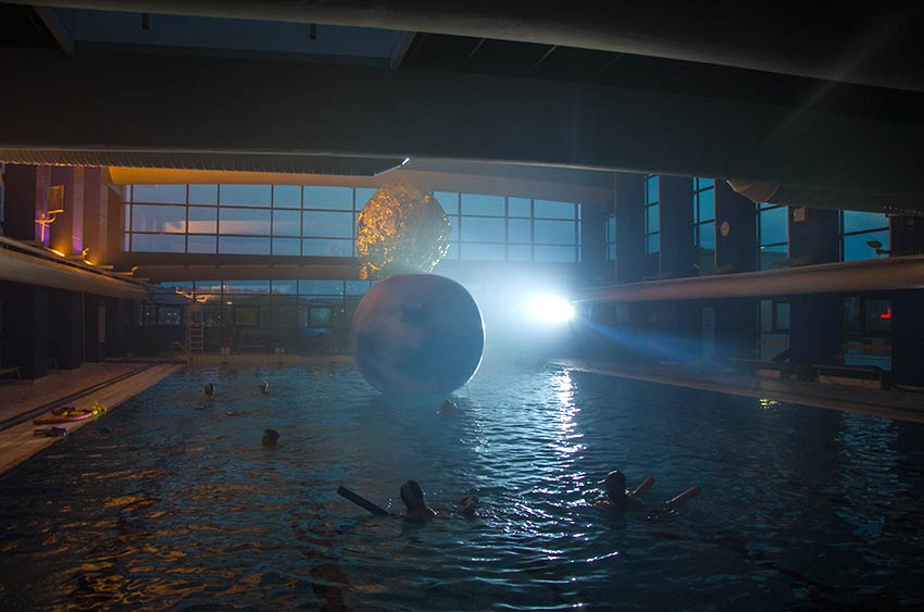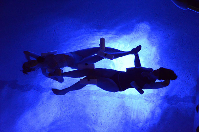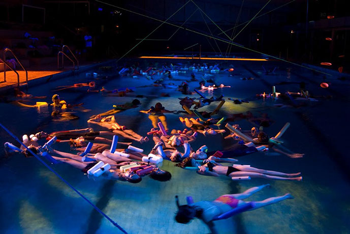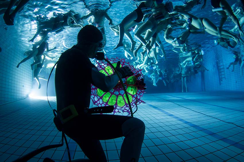 Cette expérience futuriste, en pleine mer ou déclinée en piscine, immerge des collectifs d'auditeurs dans un bain d'ondes sensorielles, émises sous la surface par des lutheries et dispositifs sous-marins.