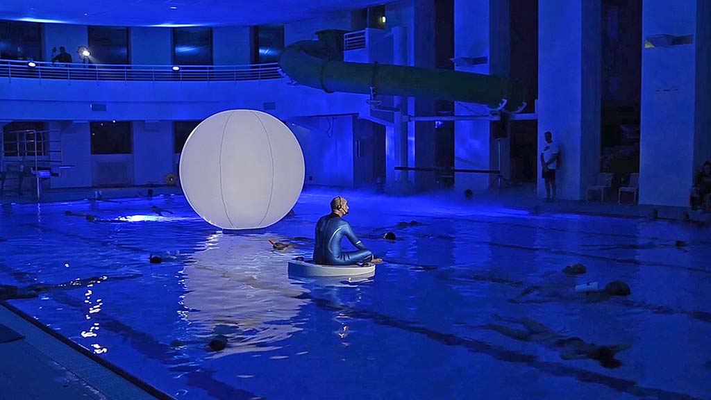 Le concert mixe des sons de cachalots et chants de baleines à bosse, captés puis restituées par Michel Redolfi via des technologies innovantes. Depuis les prises de son, hydrophone en main, menées en apnée au sein des groupes animaux (Polynésie et Ile Maurice), jusqu’à leur projection acoustique dans la profondeur du bassin olympique de Deauville. Une nouvelle génération d’enceintes submergées infrabasses restitue toute l’ampleur d’un opéra primitif aux vibrations puissantes et essentielles.