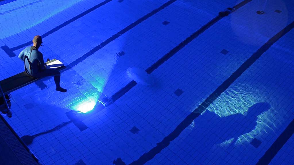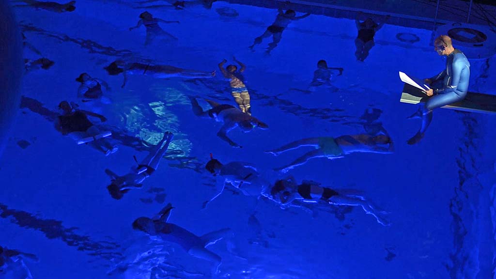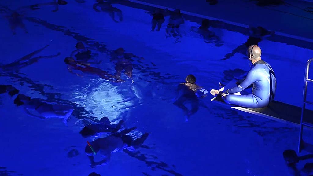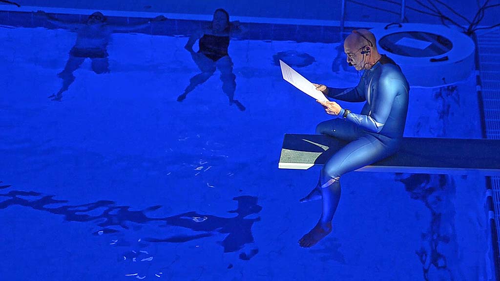 Jean-Marc BARR, immergé au centre de l’auditoire, guidera l’initiation avec des textes Inspiré des ouvrages : "Le Cinquième Rêve" de Patrice VAN EERSEL et "L'Histoire d'Irène" de Erri DE LUCA invitant à renouer le dialogue ancestral avec nos pairs océaniques.