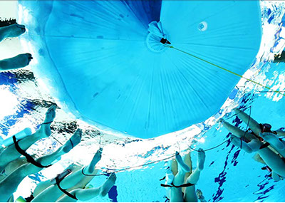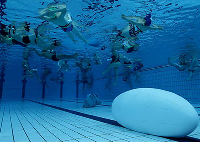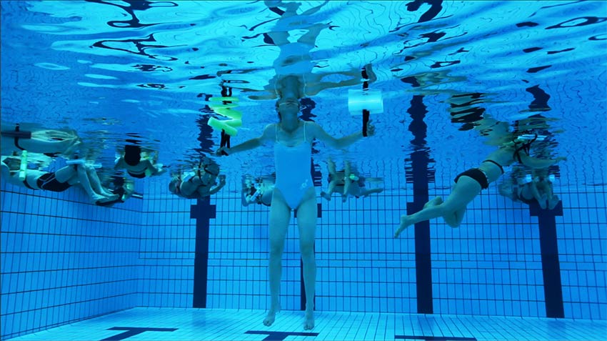 Mare Sonorum est une célébration des sons et légendes de la Méditerranée, ses chants de sirènes, ses récits de voyageurs, ses rumeurs d’animaux et poissons fantastiques. Pour les découvrir, on s’immergera dans une eau sonorisée et tropicalisée à 33° en se laissant porter sur d’amples vagues harmoniques diffusées depuis le fond du bassin.