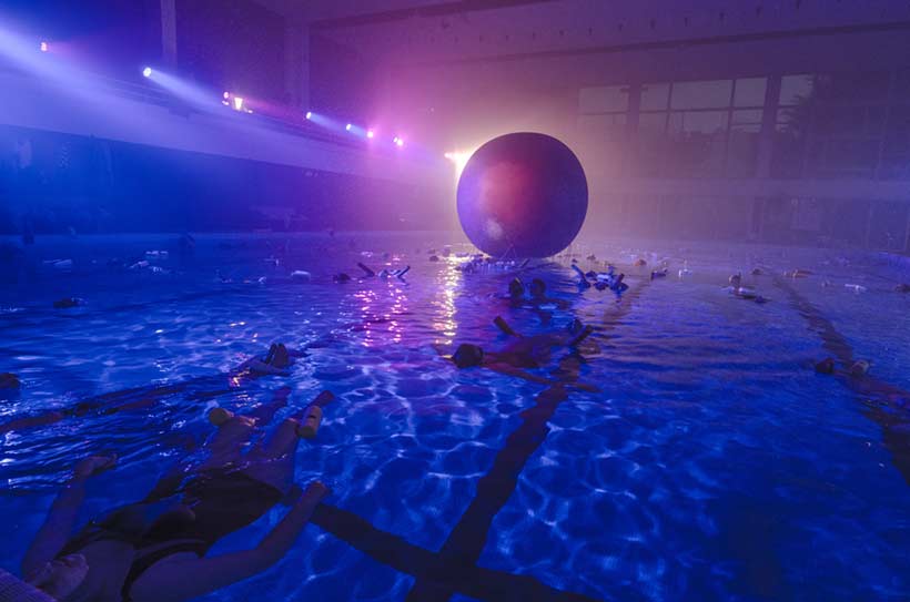 Cette expérience futuriste, en pleine mer ou déclinée en piscine, immerge des collectifs d'auditeurs dans un bain d'ondes sensorielles, émises sous la surface par des lutheries et dispositifs sous-marins.