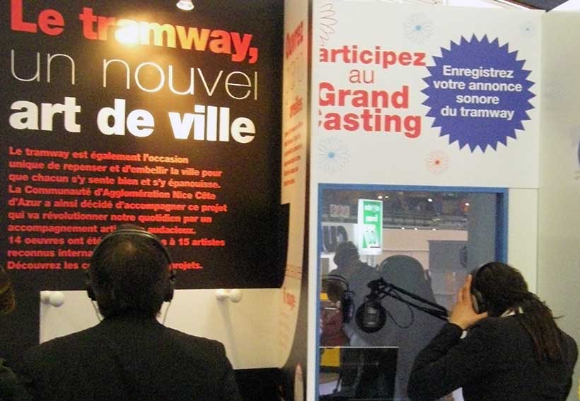 Pour la nouvelle ligne Est-Ouest, de nouveaux sonals sont en réalisation, intégrant voix professionnelles et voix amateurs de caractère recueillies sur le stand. Ainsi les visiteurs sont invités à donner un échantillon de leur voix en enregistrant dans la cabine du Sonomaton certains arrêts et messages de bienvenue de la future Ligne 2. Les meilleures annonces vocales seront retenues pour rejoindre les voix professionnelles qui ponctuent le parcours.
