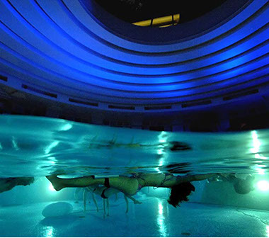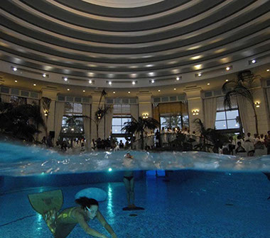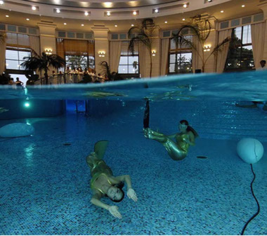 Concerts subaquatiques dans la piscine lagon du Monte Carlo Bay pour le lancement du film d'animation Litlle Mermaid 3 produit par Walt Dysney Pictures.