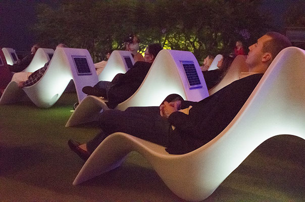 SUNFONY peut s’intégrer sur des campus et dans les entreprises innovantes. Les sites à fort transit de passagers, aéroports, gares, sont aussi des lieux idéaux pour se reposer dans le fauteuil musical sans s’isoler des messages publics.