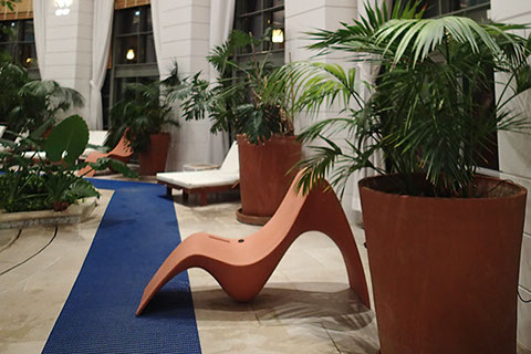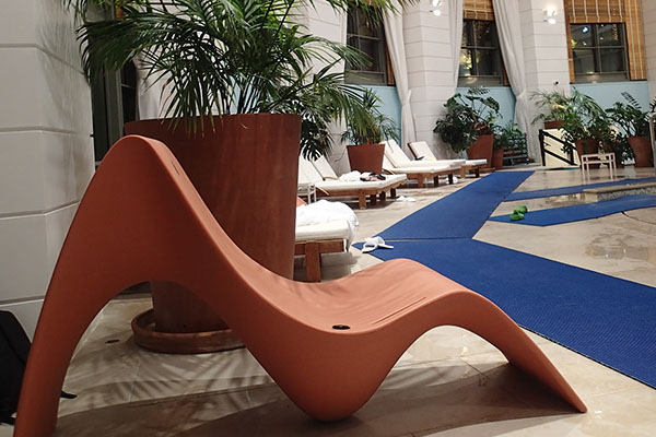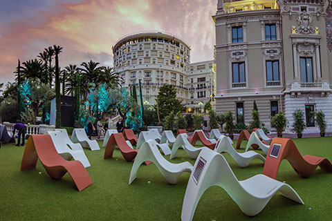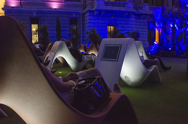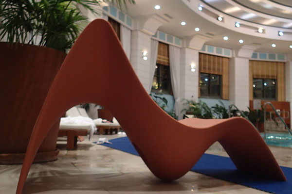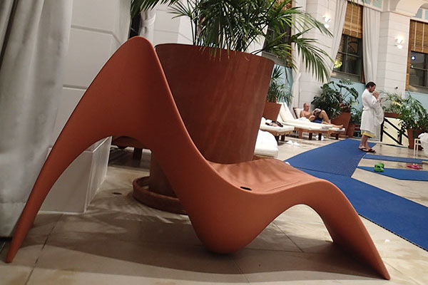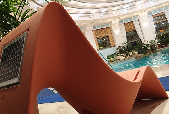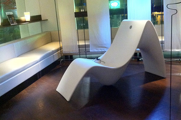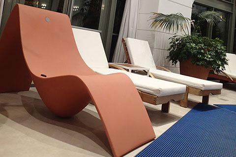 Doté d’un transformateur, il se branche dans les lounges et lobbies d’hôtels, des musées pour créer des alcôves d’écoute personnelle. Etanche à l’humidité, le fauteuil SUNFONY peut se placer idéalement dans des spas, dans des établissements de soins et de remise en forme. Il est ainsi présent aux Thermes de Monaco.