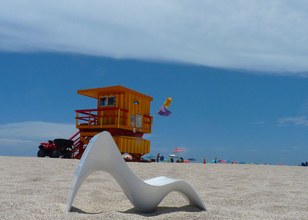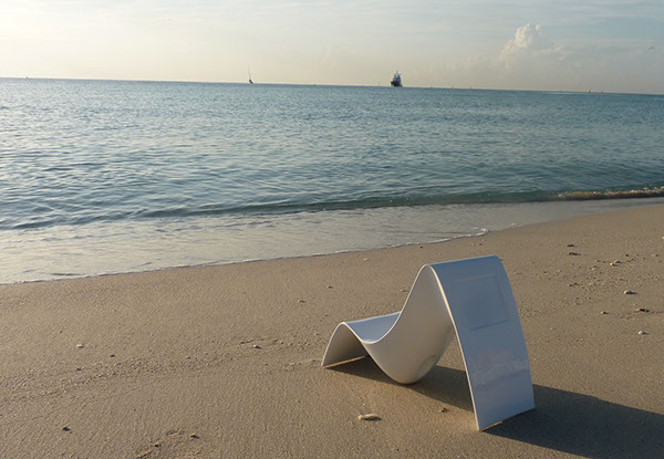 Le modèle SUNFONY Nomad se pose devant un rivage, sous un arbre ou au bord d’une piscine.