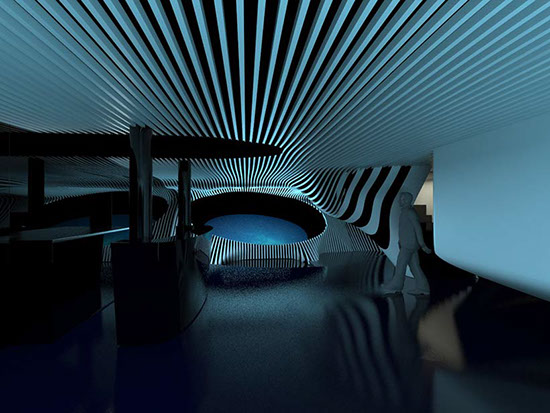 Les croisières d’exploration PONANT ont proposé à l’architecte Jacques ROUGERIE de concevoir un grand salon d’observation sous-marin placé dans la quille de leurs nouveaux navires.