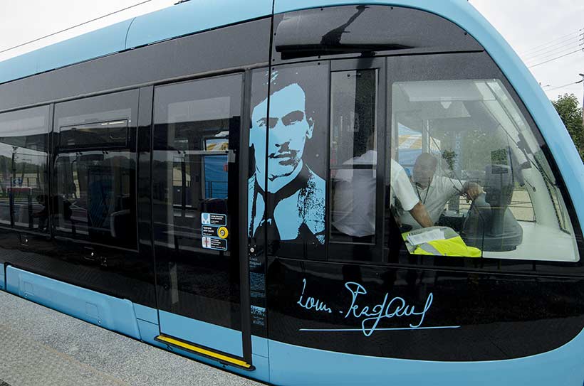 Chacune des dix-neuf rames du tramway de Besançon est baptisée du nom d'une personnalité bisontine célèbre.